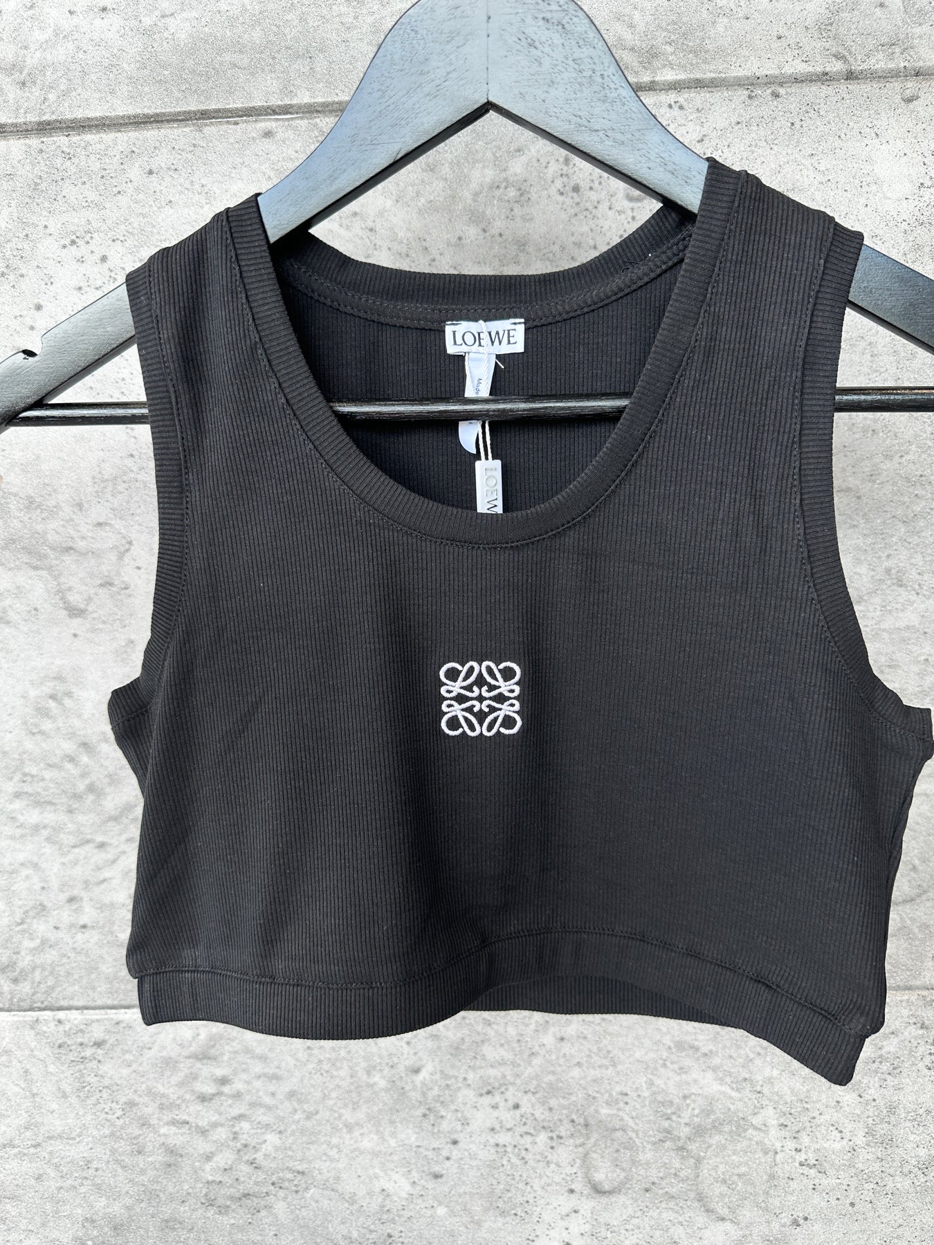 Памучен рибсен топ с бродирано лого.